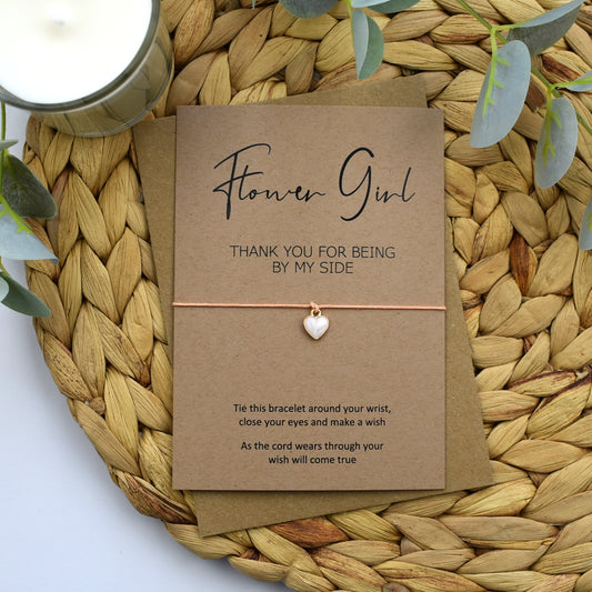 Rustic Thank You For Being By My Side Wish Bracelet - Flower Girl - Heart Charm
