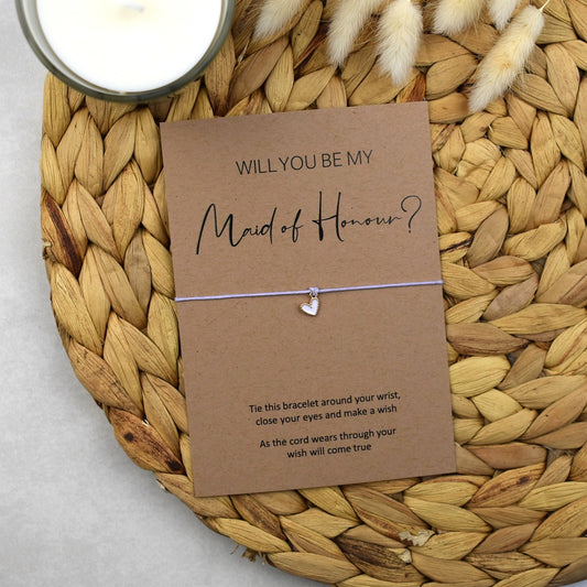 Rustic Will You Be My Bridesmaid Wish Bracelet - Heart Charm