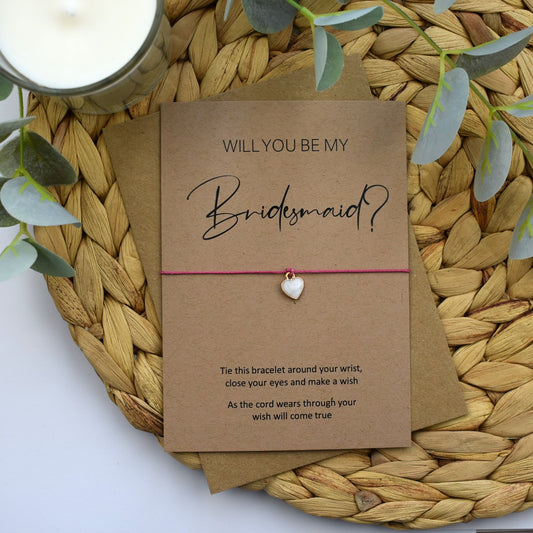 Rustic Will You Be My Maid of Honour Wish Bracelet - White Heart Charm