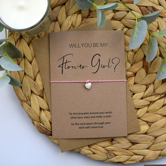 Rustic Will You Be My Flower Girl Wish Bracelet - Heart Charm