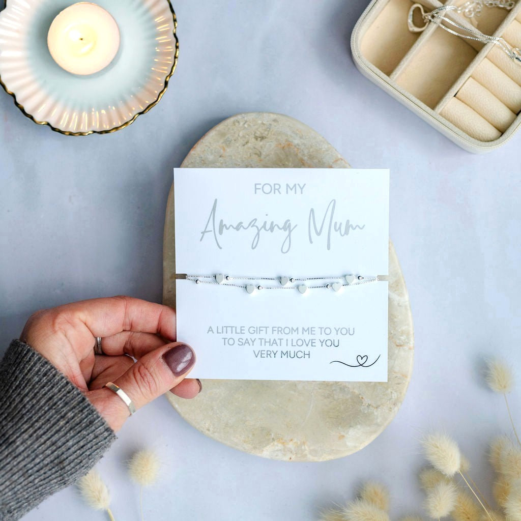 The adjustable design ensures a comfortable fit for all wrists, making it suitable for Mothers and new Mum’s. This heart charm bracelet for Mum is an ideal gift to show how much she means to you, whether as a birthday gift, Mother’s Day gift or special occasion gift. Make her feel loved and appreciated with this beautiful amazing Mum bracelet, a lasting reminder that she truly is extraordinary.