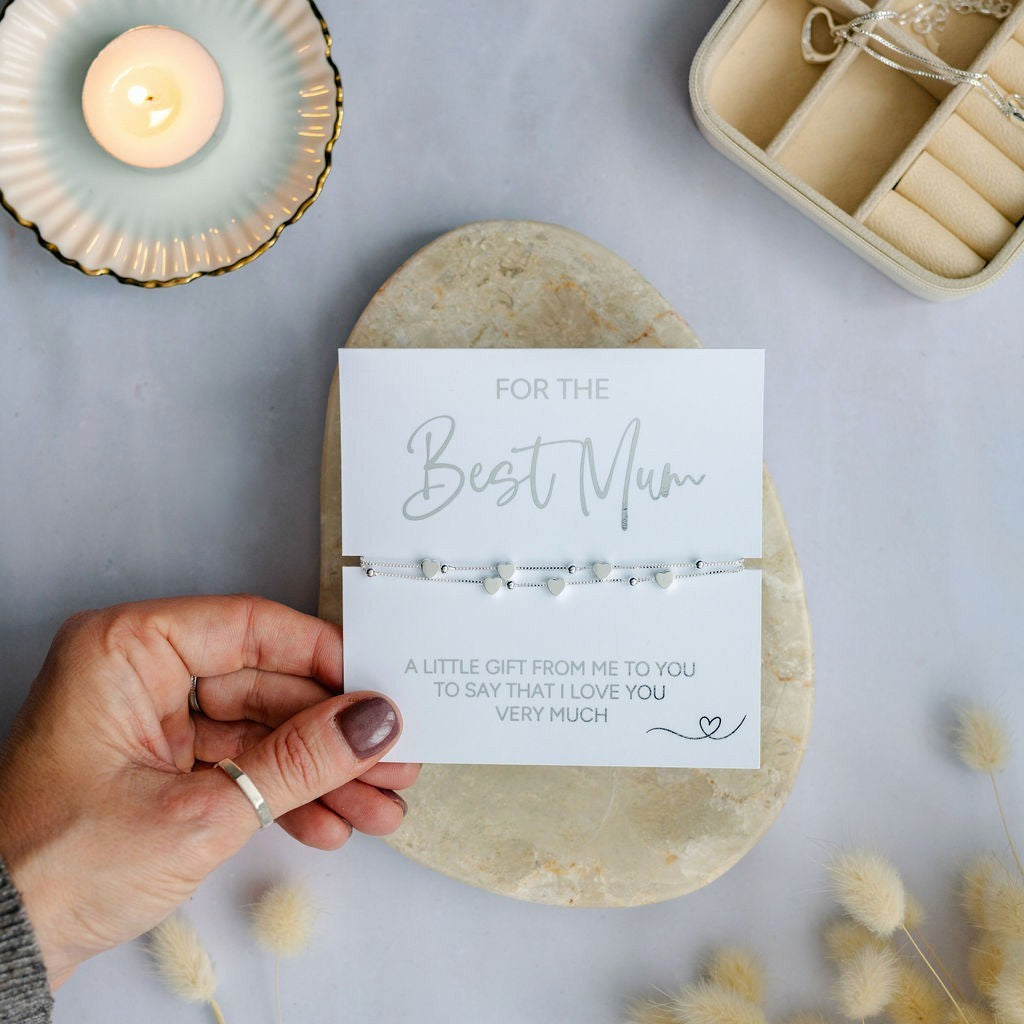 This heart charm bracelet for Mum is an ideal gift to show how much she means to you, whether as a birthday gift for Mum, a Mother’s Day gift or a thank you gift.