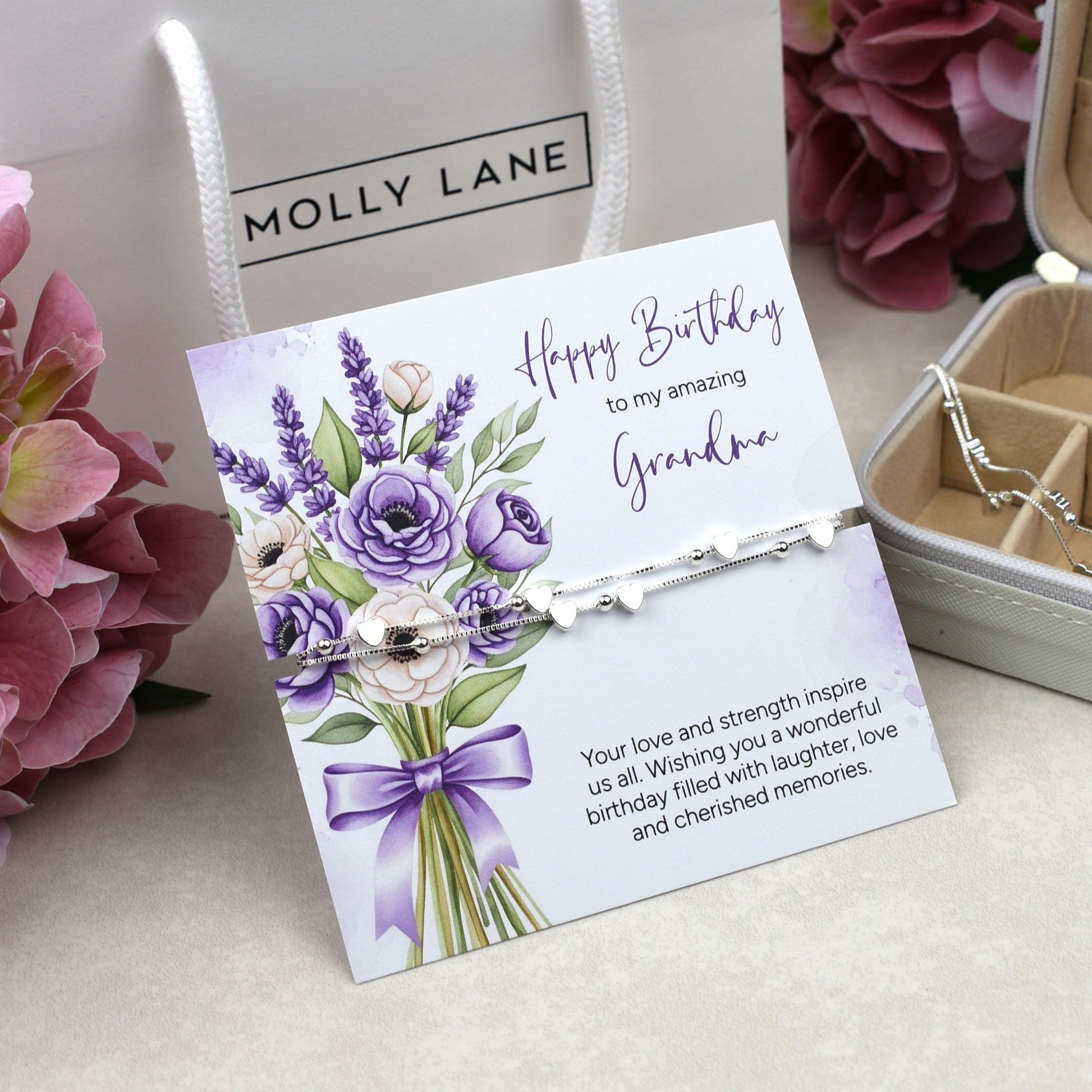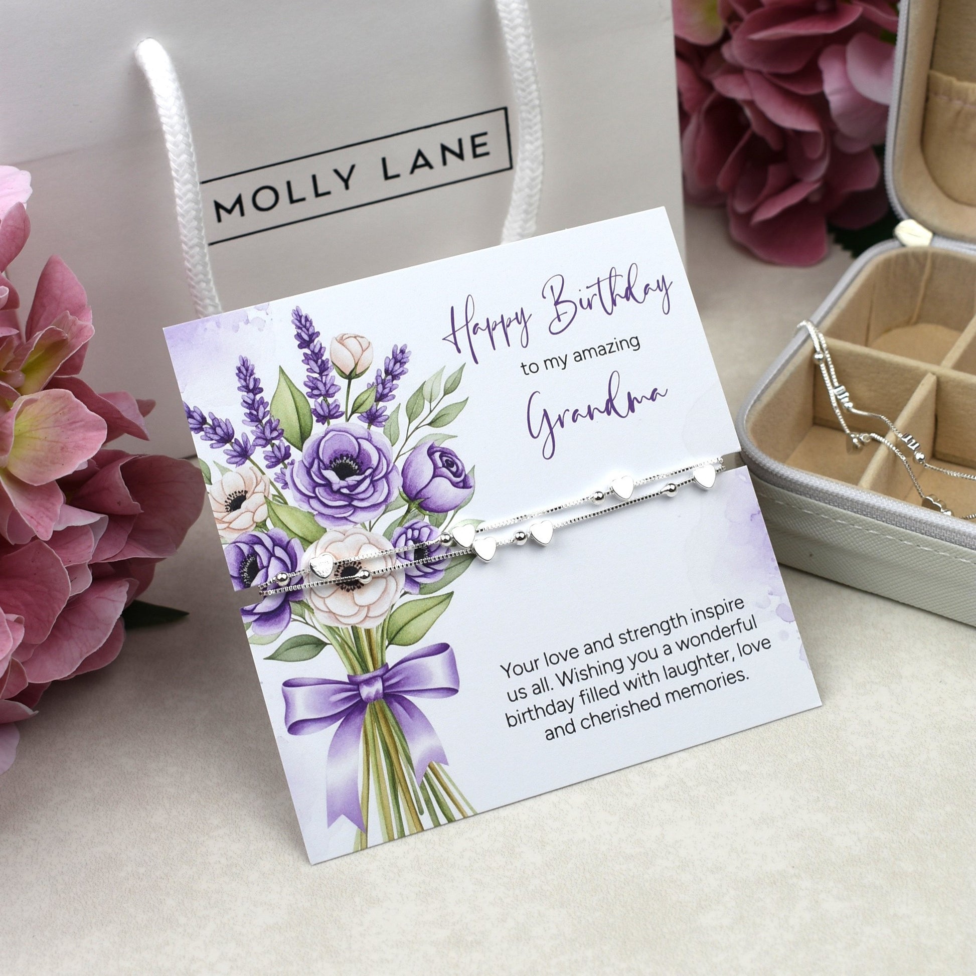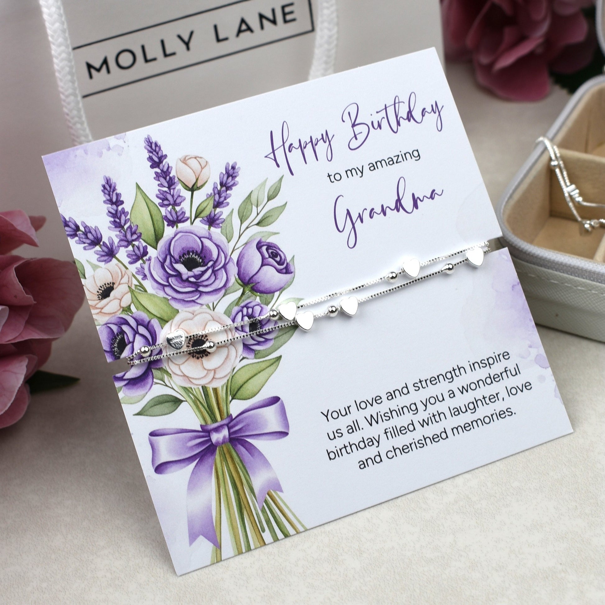 Beautifully presented on a card, ‘Happy Birthday To My Amazing Grandma’ ‘Your love and strength inspire us all. Wishing you a wonderful birthday filled with laughter, love and cherished memories’.
