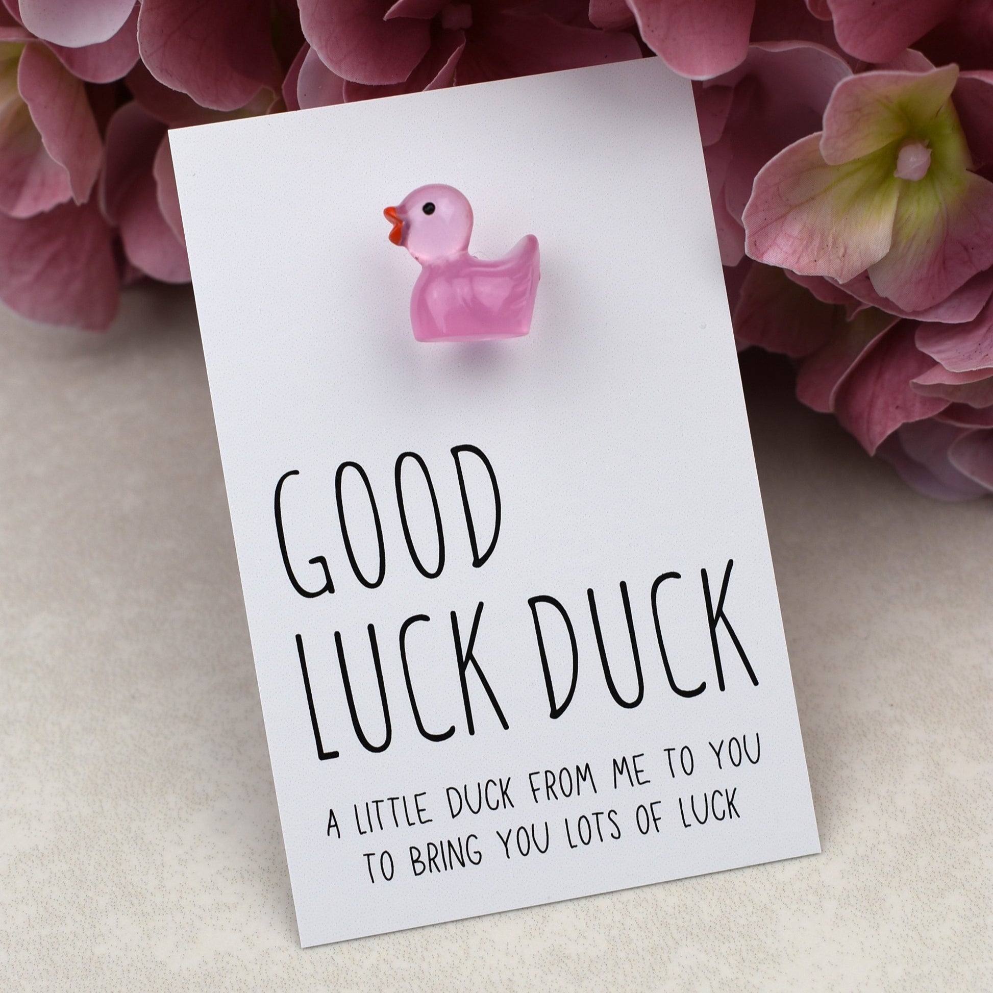 Each presentation card measures 5.5cmx8.5cm and has printed ‘Good Luck Duck' 'A little duck from me to you to bring you lots of luck'.